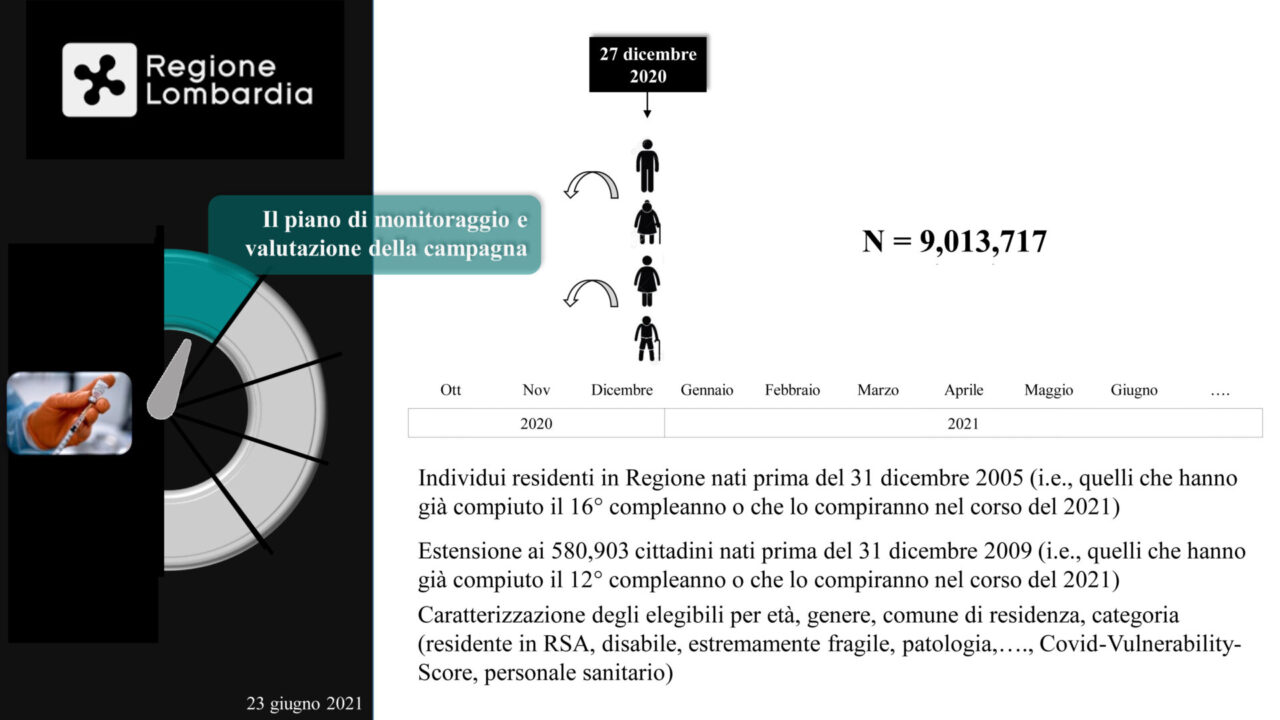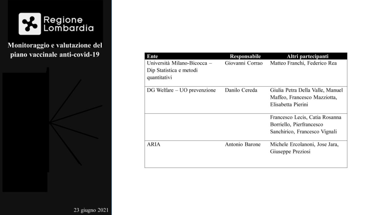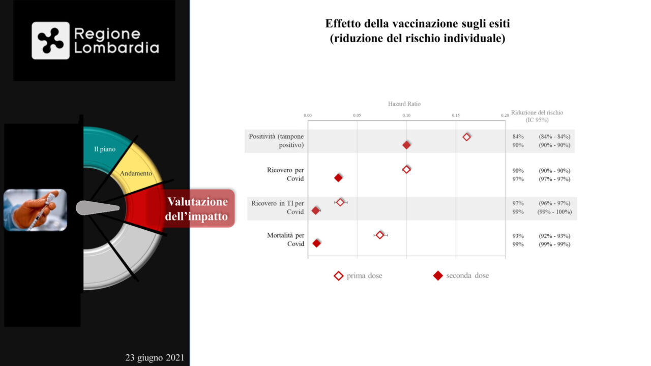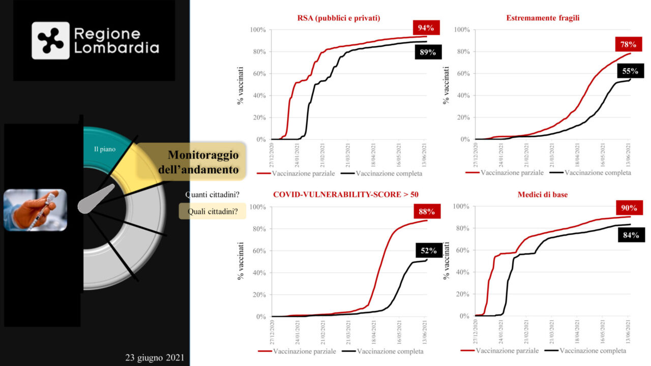 Numeri importantissimi e significativi, quelli illustrati dal professor Giovanni Corrao, ordinario di Statistica medica dell’Università Bicocca di Milano che ha presentato a Palazzo Pirelli, lo studio ‘Monitoraggio e valutazione del piano vaccinale anti-covid-19’ insieme alla vicepresidente e assessore al Welfare della Regione Lombardia, Letizia Moratti e al coordinatore della campagna vaccinale, Guido Bertolaso.