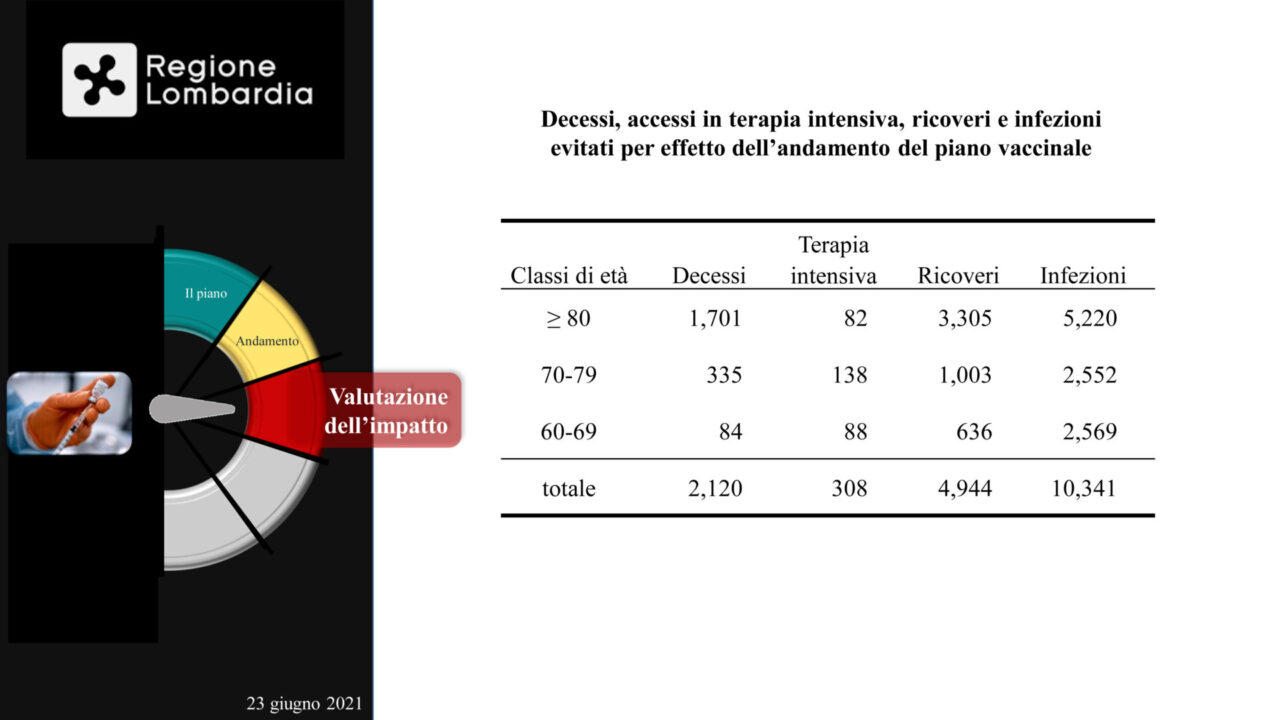 “La campagna vaccinale, in Lombardia, ha evitato oltre 2.100 decessi tra gli over 60: ben 1.701 soltanto tra gli ultraottantenni”.
