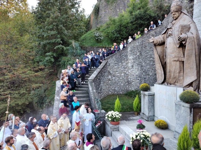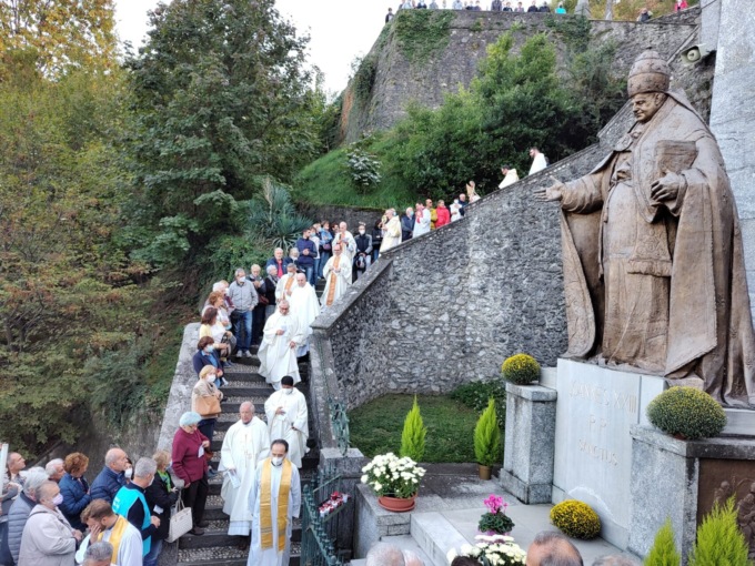 A termine della funzione, religiosi e fedeli hanno organizzato una processione per raggiugere la statua di Papa Giovanni XXIII, a cui è stata impartita la solenne benedizione.