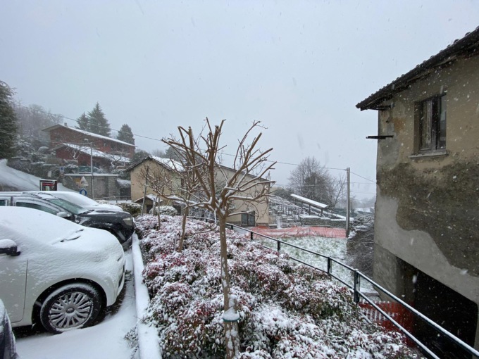 Tantissimi fiocchi di neve a Merate e limitrofi che piano piano stanno imbiancando le strade e i paesi.