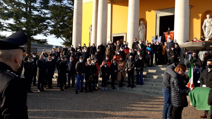Due simboli dal significato profondo – la bandiera tricolore e il cappello d’ordinanza – quelli posizionati sul feretro del luogotenente Mundula durante il funerale di quest’oggi. Una funzione che ha visto la nutrita partecipazione di militari (gli amici del Nucleo cinofili di Casatenovo, quelli delle stazioni della Compagnia di Merate, quelli in congedo dell’Associazione Carabinieri), la presidente della Provincia Alessandra Hofmann, diversi sindaci del Meratese e Casatese, i dirigenti del Gs San Giorgio di Casatenovo con il quale collaborava e della Bottega dell’Arte. Tutti stretti in un abbraccio affettuoso alla moglie Tiziana e ai figli del luogotenente.