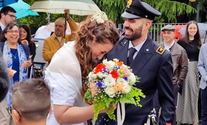 Questi alcuni dei momenti che più hanno contraddistinto il matrimonio tra il maresciallo dei Carabinieri Martina Ghezzi, originaria di Novate, e Gerardo Gallo, militare alpino attualmente di base a Cuneo, originario di Caprioli Pisciotta in provincia di Salerno, convolati a nozze nella mattinata di sabato 20 maggio 2023 nella chiesa della Madonna della Pace di via Cerri.