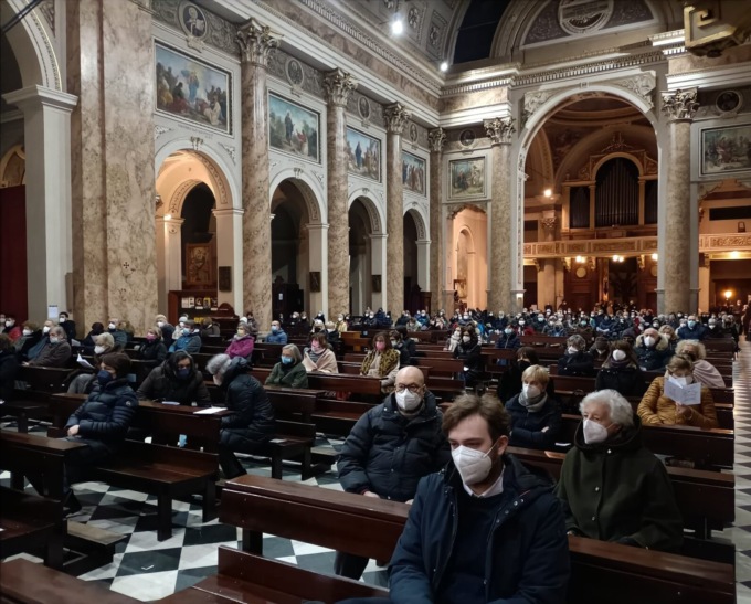“Questa sera allora pregheremo per questo cambiamento che deve avvenire anzitutto da noi. Ci sono delle soluzioni che a giudizio umano sembrano più convenienti. Il giudizio umano sa stabilire chi è l’aggressore e chi sono gli aggrediti, ma se vogliamo agire secondo lo sguardo, la misericordia e la giustizia di Dio, dobbiamo cambiare questi giudizi, altrimenti non ci sarà mai la pace. Non esiste una pace armata, armabile, che avviene attraverso le guerre commerciali o le guerre convenzionali. Noi chiediamo di cambiare la nostra città e il mondo affinchè tutti i popoli possano godere della pace. Lo facciamo con i nostri fratelli ortodossi, lo facciamo per chi è colpito dalla guerra, per il popolo ucraino. Non preghiamo per la nostra tranquillità o perchè le nostre bollette del gas non aumentino ancora, preghiamo per la pace, per la fine di questa guerra e di tutte le guerre”.