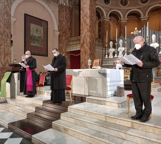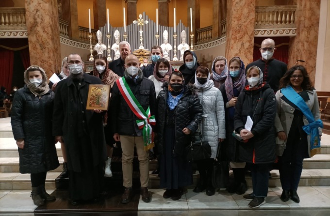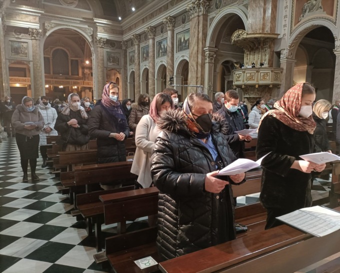 Vibrante l’appello dche lo scorso 24 febbraio è stato fatto dal metropolita di Kiev Onufrij all’indomani dell’attacco russo e che è stato letto in basilica.