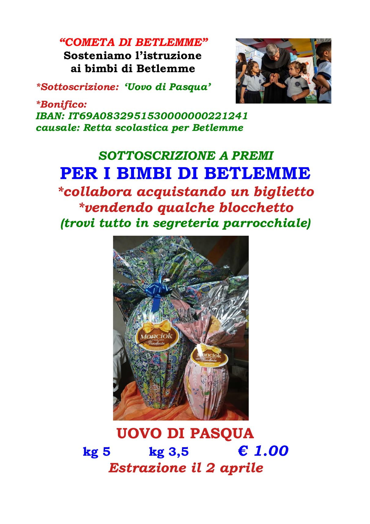 Lotteria di Pasqua in favore dei bimbi di Betlemme