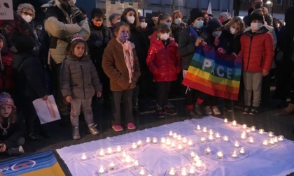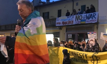 Una piazza gremita come da anni, complice anche la pandemia che ci ha investito, non si vedeva. Uomini, donne, giovani e meno giovani, bambini di ogni età: nessuno è voluto mancare questa sera, mercoledì 2 marzo 2022 al presidio per la pace promosso da una quarantina di associazioni del Meratese, che si è svolto in piazza Prinetti a Merate. Una manifestazione sotto l’insegna dei colori dell’arcobaleno che sventolavano sulle bandiere della pace, ma anche del giallo e del blu, le “tinte” dell’Ucraina, terra martoriata dal sanguinoso conflitto scoppiato nel cuore del nostro continente. Dopo il commovente evento che si è svolto nel pomeriggio a Osnago centinaia di brianzoli, hanno fatto “quadrato” e si sono uniti all’unisono in una sola, accorata, pressante richiesta: “No alla guerra”.