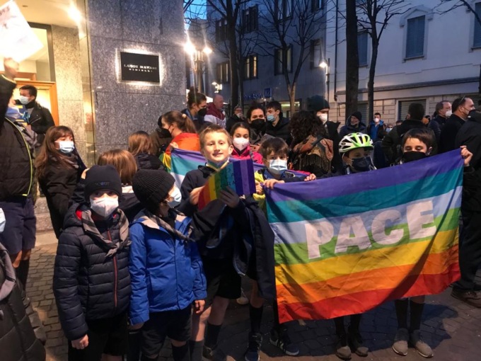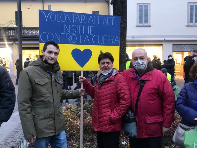 Una piazza gremita come da anni, complice anche la pandemia che ci ha investito, non si vedeva. Uomini, donne, giovani e meno giovani, bambini di ogni età: nessuno è voluto mancare questa sera,  mercoledì 2 marzo 2022 al presidio per la pace promosso da una quarantina di associazioni del Meratese, che si è svolto in piazza Prinetti a Merate.  Una manifestazione sotto l’insegna dei colori dell’arcobaleno che sventolavano sulle bandiere della pace, ma anche del giallo e del blu, le “tinte” dell’Ucraina, terra martoriata dal sanguinoso conflitto scoppiato nel cuore del nostro continente. Dopo il commovente evento che si è svolto nel pomeriggio a Osnago   centinaia di  brianzoli, hanno fatto “quadrato” e si sono uniti all’unisono in una sola, accorata, pressante richiesta: “No alla guerra”.