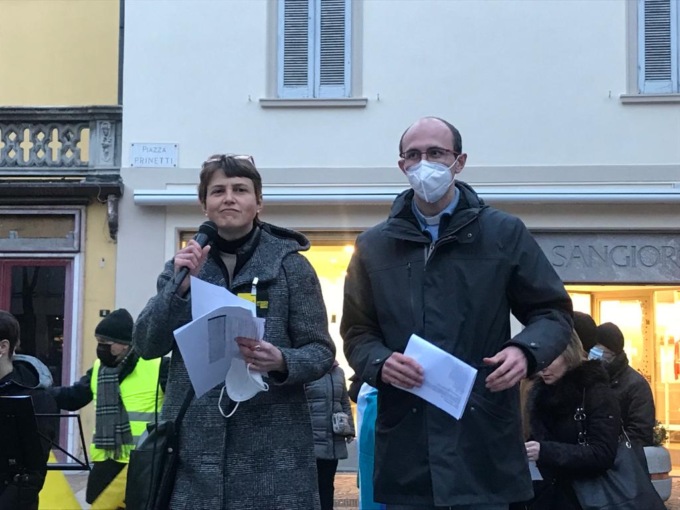 “Solo un breve ringraziamento prima di tutto a voi che avete deciso di uscire di casa e venire, anche dai pesi limitrofi, in questa piazza di Merate, centro simbolico della nostra città per dite insieme il nostro No alla guerra. –  ha esordito Mazza –  Crediamo che essere qui sia una scelta importante perchè testimonia la forte condivisione di un valore fondamentale e prioritario che supera ogni appartenenza e ci restituisce alla nostra comune umanità: la pace. Per questo ringraziamo tutte le associazioni che hanno voluto pubblicamente metterci la faccia aderendo alla proposta di questo presidio, coinvolgendo i propri soci, dando un volto fatto di giovani, adulti, anziani, uomini e donne a un territorio che non abbiamo mai sentito così ricco di attività sociali, sportive, culturali, educative. Un grazie anche alla Amministrazione comunale e al Questore che hanno permesso l’organizzazione un po’ improvvisata di questo presidio”.