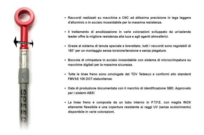 “Disponendo di una serie di brevetti esclusivi, possiamo fornire anche il tubo rigido sagomato. Inoltre, il brevetto più interessante prevede che una volta pressato il raccordo, quest’ultimo possa essere orientato a piacere fino a 180° ottenendo una customizzazione del prodotto praticamente pari al 100% e permettendo a chi acquista da noi, di adattare perfettamente il tubo evitando che si provochino torsioni. Tutti i componenti e il tubo raccordato prodotti da noi, vengono rilasciati con allegata la certificazione TUV e sono idonei sia alla strada che alle competizioni” aggiunge il titolare.