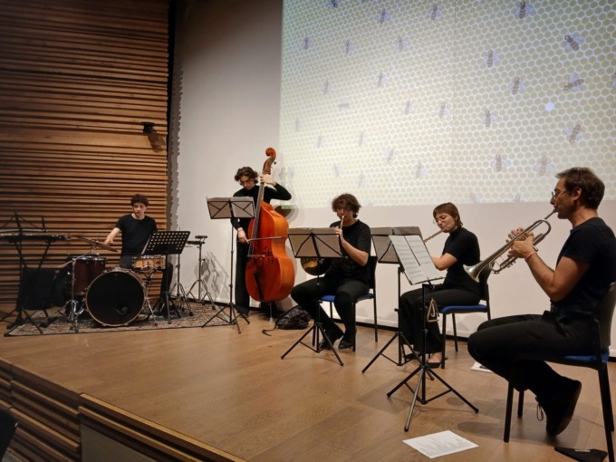 Davvero bravi anche i quattro giovani musicisti sul palco, che, con sicurezza e bella compattezza di insieme, hanno suonato con gusto, sottolineando i momenti più intensi della storia, presentando alla platea ogni strumento: Emma Besana, Flauto traverso – Edoardo Fumagalli, Corno – Simone Ortolani, Contrabbasso – Gabriele Bellini, Batteria e percussioni.