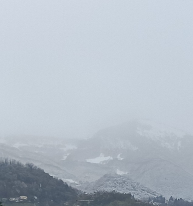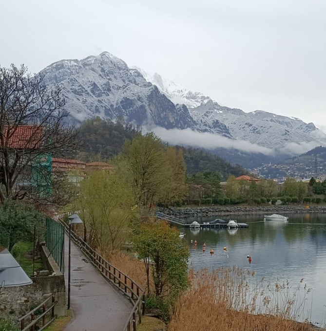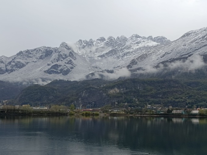 Neve d’aprile. Dopo la grandinata improvvisa di ieri sera Lecco si è risvegliata con i suoi monti ricoperti di neve.