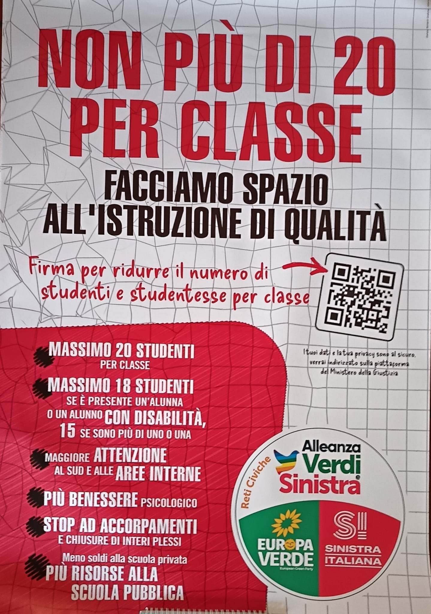 La proposta di legge chiede di fissare un tetto massimo di 20 studenti per classe, che scende a 18 in presenza di un alunno o un’alunna con disabilità e a 15 nel caso di più studenti con disabilità. Tra gli obiettivi dichiarati vi sono anche una maggiore attenzione alle aree interne e al Sud, il miglioramento del benessere psicologico di studenti e insegnanti, lo stop agli accorpamenti e alle chiusure di plessi scolastici e un riequilibrio delle risorse a favore della scuola pubblica.