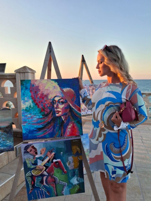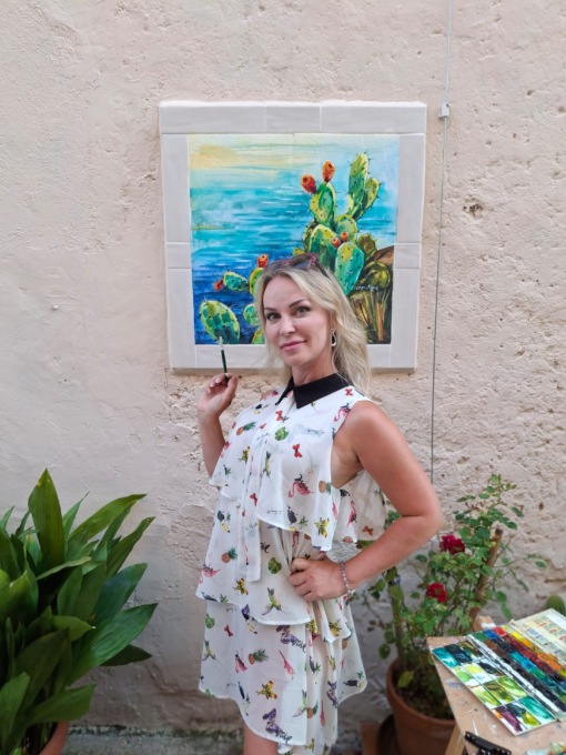 Poi la svolta: «Ho iniziato a partecipare a diverse mostre, la prima delle quali , nella città in cui insegnavo. Le mie opere si trovano in diverse collezioni private sia in Russia che all’estero. I miei motivi preferiti sono ritratti, paesaggi italiani in acquerello, fiori e animali stilizzati in acrilico. Inoltre amo dipingere ritratti con tecniche diverse, ia grafiche che pittoriche».