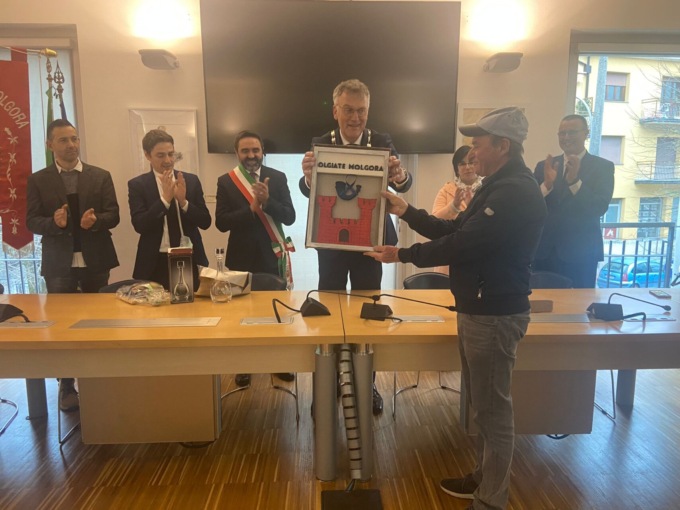 «Per noi è un onore avervi qui oggi. E’ un grandissimo piacere rivedervi – ha detto in inglese il sindaco di Olgiate Giovanni Battista Bernocco – Spero che vi possiate sentire a casa, così come ci siamo sentiti noi quando siamo venuti a trovarvi».