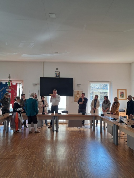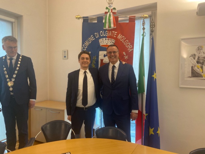 Bandiera rossa, bianca e blu appesa in municipio, l’inno italiano suonato con l’inno olandese: Olgiate incontra Oisterwijk in vista del gemellaggio.