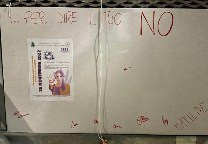 L’invito ai cittadini a visitare la Galleria d’arte sospesa (transito del sovrappasso) per testimoniare il proprio “NO ALLA VIOLENZA CONTRO LE DONNE”.
