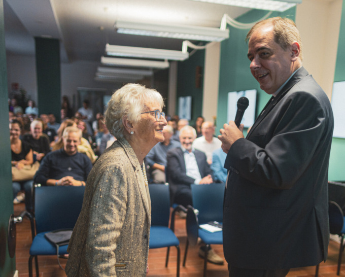 In seguito, a prendere parola è stata Franca Colombo, presidente dell’associazione Don Giuliano Sala a cui fa riferimento il liceo che ha fortemente voluto l’organizzazione della serata. «Ci sono tante aspettative intorno al nostro liceo, che ha due indirizzi, quello linguistico e quello economico sociale. La nostra attenzione va all’evoluzione delle richieste nel mondo del lavoro e nello specifico nell’economia della nostra Brianza. Nel corso negli anni siamo stati aiutati da diversi imprenditori, come Peppino Sacchi e i qui presenti Vittore Beretta e Sergio Longoni, che hanno sentito di dover condividere le proprie capacità con le nuove generazioni».