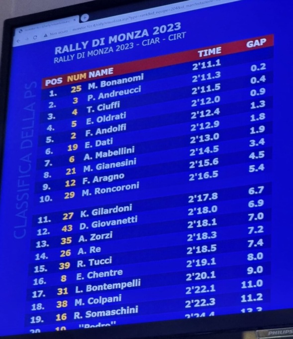 Il pilota meratese Marco Bonanomi si è fatto notare per lo scratch di prova di Bonanomi con cui ha staccato di pochi decimi Paolo Andreucci e Tommaso Ciuffi di 4 decimi.