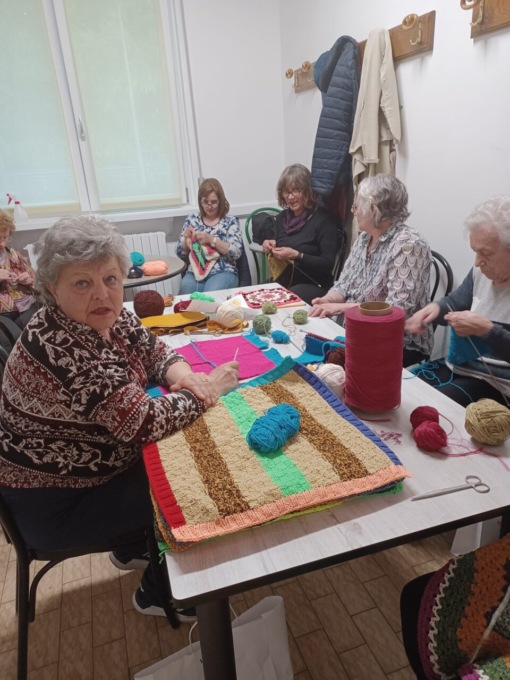 “Le nostre socie mentre confezionano i quadrotti per il progetto “viva vittoria” verranno confezionate coperte per i centri antiviolenza. Noi stiamo lavorando per il centro l’altra metà del cielo di Merate. Se chi legge questo post ha della lana da regalarci saremo molto liete di riceverla. Questi sono i numeri di telefono dove potete contattarci: 3519068772 o 039 9148154 (14/18)”