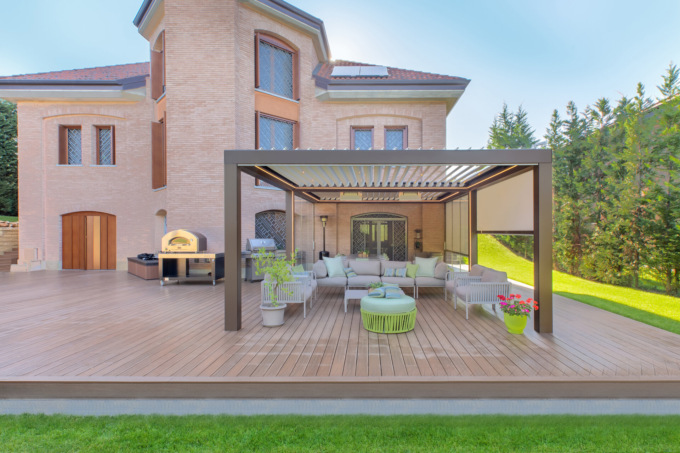 La versatilità di installazione è un altro punto di forza. Le pergole possono essere montate in modalità autoportante, ideali per chi desidera creare una vera e propria isola outdoor, oppure addossate a parete, per un prolungamento naturale dell’abitazione.
