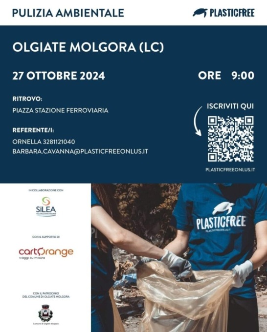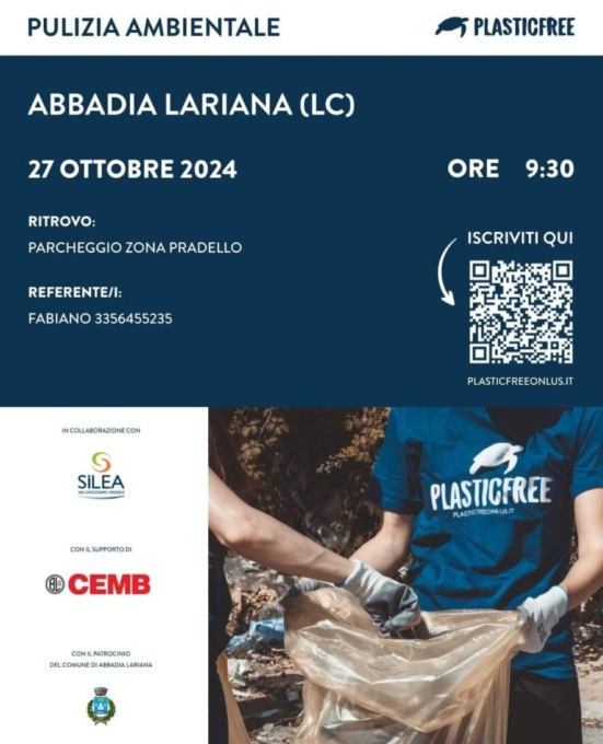Continua l’impegno di Plastic Free sul nostro territorio: tre gli appuntamenti di domenica 27 ottobre 2024, rispettivamente a Lecco, ad Abbadia Lariana e a Olgiate Molgora.