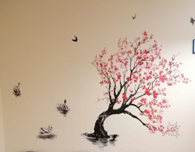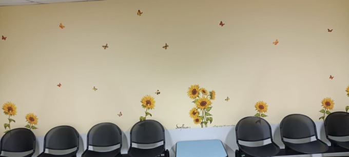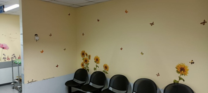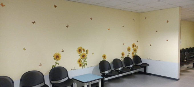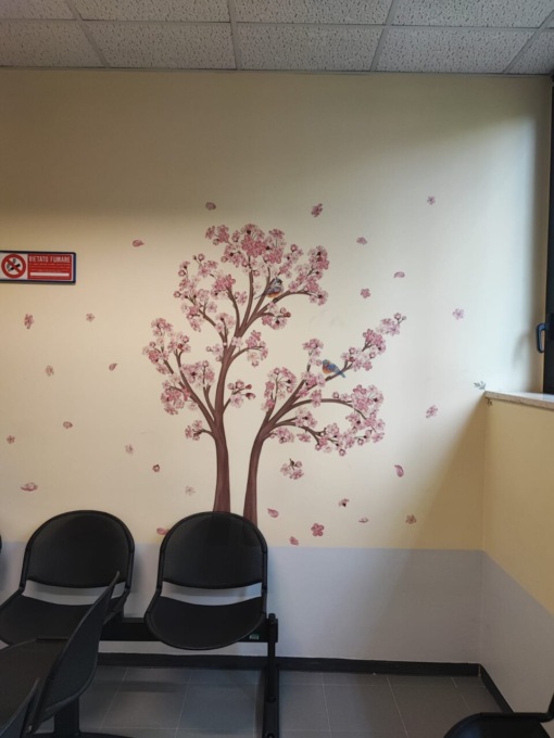 Parte del lavoro è già sotto gli occhi di tutti, pazienti, visitatori, personale medico e sanitario. La scelta è ricaduta principalmente sul tema floreale, ma ci sono anche aforismi motivazionali, uccellini e così via. Gli ambulatori nel seminterrato del Mandic sono ben 26; si tratta perciò di un lavoro lungo e dispendioso.