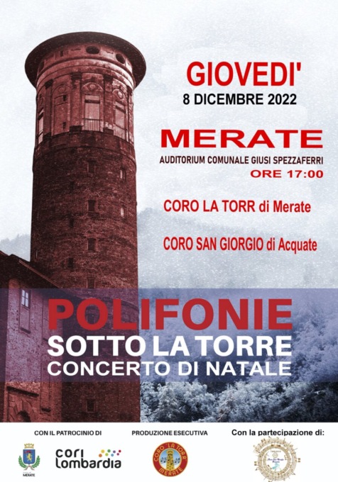 Polifonie sotto la torre, il concerto di Natale, l’appuntamento è fissato per giovedì 8 dicembre 2022 all’auditorium comunale di Merate Giusi Spezzaferri, alle 17.