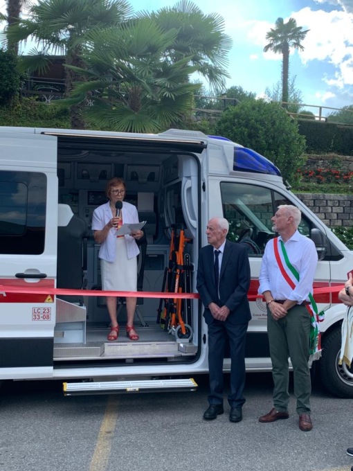 Presenti per l’occasione una ventina di volontari in divisa bianca e rossa, il presidente del distretto di Merate Claudio Ferrario, il sindaco di Imbersago Fabio Vergani, il comandante della stazione dei carabinieri di Merate Edonio Pecoraro, i membri del Rotary, la dottoressa Carla Magni, i rappresentanti dello studio di commercialisti Galbusera e tanti amici e collaboratori dei coniugi Volpi, che hanno tagliato il nastro con emozione ufficializzando così la consegna del nuovo mezzo di soccorso che correrà sulle strade della città.