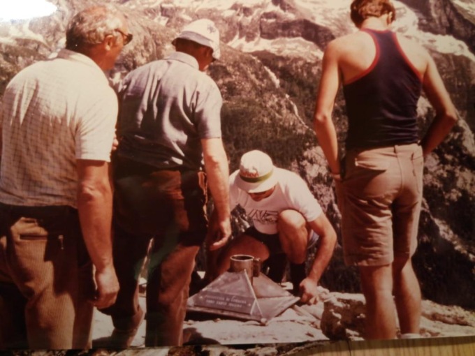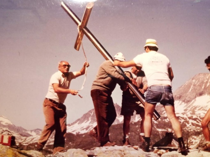 Era il 14 luglio 1984, quarant’anni fa, quando un gruppo di amici che era solito frequentare il rifugio Myriam con don Carlo Millefanti pensò di sostituire la croce in legno ormai rovinata dal tempo. «Il pensiero è stato quello di mantenere integro il ricordo di Helmut Campidell (17enne lomagnese precipitato dal Corno Medale, ndr) e di Elena Pirovano (concittadina 14enne scomparsa con gli zii in un disastro aereo a Olbia, ndr)» scriveva Fumagalli.