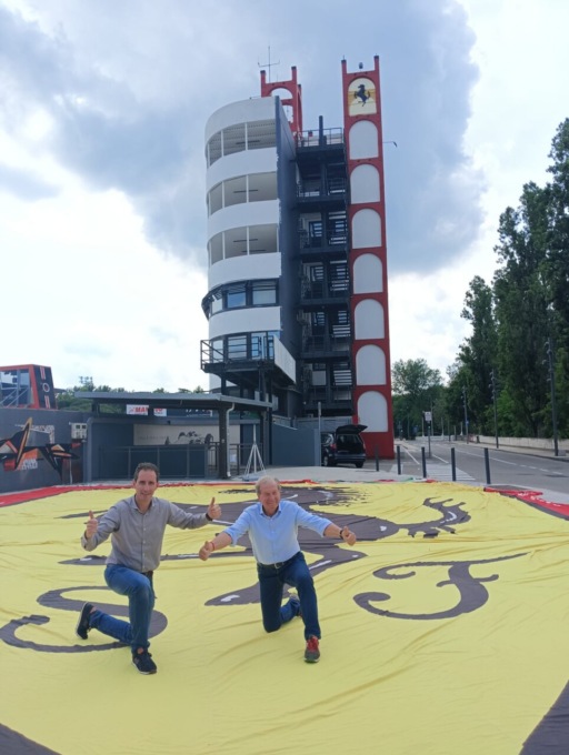 Lo stendardo di 17×21 metri ha accompagnato il Club in tutte le sue trasferte ed è ricoperto dagli autografi dei più importanti piloti di casa Ferrari. Un cimelio dal valore inestimabile, soprattutto a livello affettivo che nessuno sperava più di veder tornare a casa.