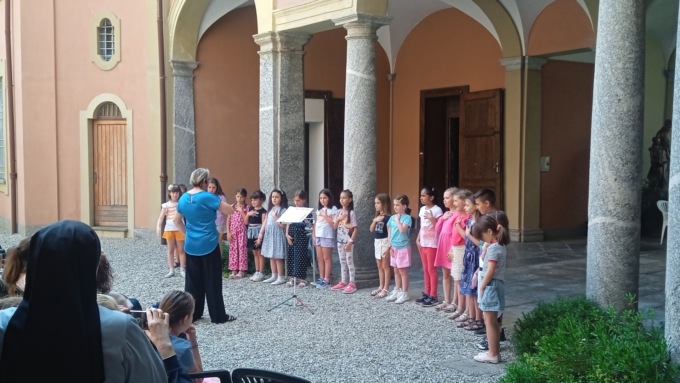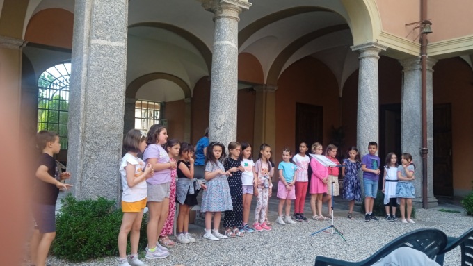 Nella splendida cornice di Palazzo Sozzi, sede delle Madri Canossiane, i piccoli studenti delle classi seconde e terze delle scuole elementeari di Caprino Bergamasco sono partiti con delle esibizioni di body percussion fino ad arrivare a delle vere e proprie esibizioni di canto.
