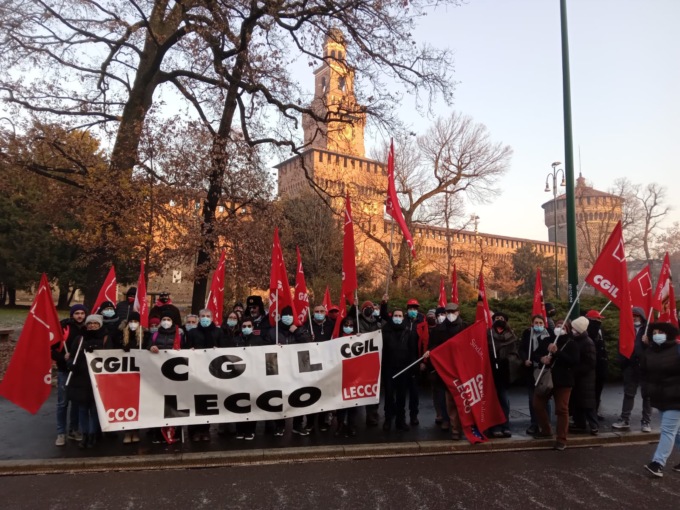 C’è anche una folta rappresentanza di lecchesi nel corteo partito oggi, venerdì 16 dicembre 2021,  da piazza Castello a Milano per la manifestazione indetta dalle sigle nazionali di CGIL e UIL in occasione dello dello sciopero generale proclamato per oggi per protestare contro la manovra economica del governo Draghi.