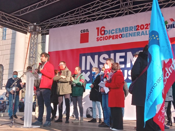 "Negli incontri istituzionali abbiamo chiesto una Legge di Bilancio equa e non ci hanno dato ascolto. Allora abbiamo lasciato i nostri luoghi di lavoro e siamo scesi in piazza a migliaia"