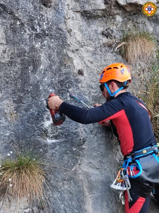 Alcuni tecnici hanno già un’esperienza consolidata per affrontare la situazione, altri invece necessitano di integrare quello che già sanno con una formazione specifica, in modo tale che tutti raggiungano un certo livello di competenza. Nelle due giornate appena trascorse i tecnici, con la supervisione di due istruttori regionali del Cnsas, hanno messo a punto l’utilizzo pratico di alcuni strumenti, come per esempio perforatori manuali e trapani a batteria, e di quei materiali adatti a costruire ancoraggi idonei alla progressione.
