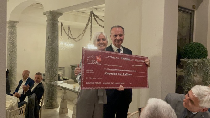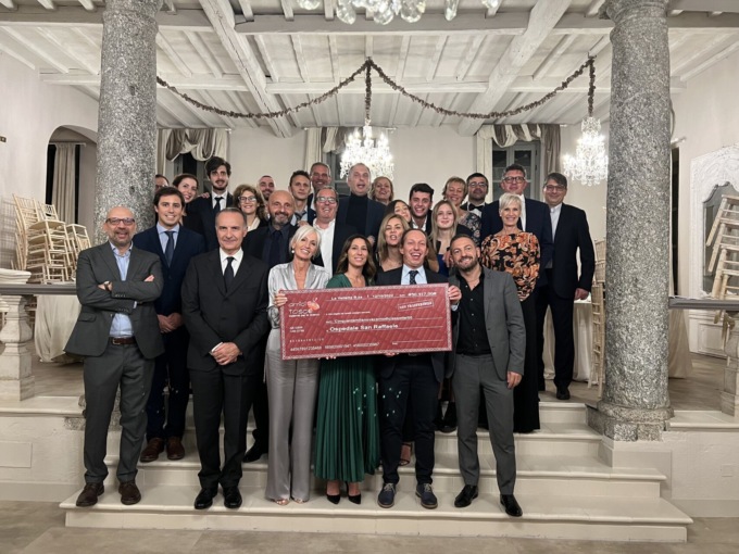 Una partecipazione davvero ampia, che ha visto occupare ben 191 posti a sedere in un’unica sera. «L’associazione non si è mai fermata – ha introdotto Mirko Sironi – Anche nei due anni di Covid è sempre stata attiva per sostenere la ricerca in collaborazione con l’unità operativa di Neurochirurgia dell’ospedale San Raffaele. In cinque anni, dal 2017 fino al Memorial Tosco di quest’estate, abbiamo raccolto ben 125.867 euro: oggi, simbolicamente doniamo un assegno di 50.917 euro al professore. Questo contributo rappresenta ciò che è stato fatto in questi ultimi due anni: il settimo Memorial Tosco 2020, con il pranzo d’asporto, l’ottavo Memorial Tosco 2021 organizzato guardando gli Europei, le donazioni private, quelle delle associazioni legate al nostro gruppo, il progetto Panettoni del 2021 (riproposto anche quest’anno), il nono Memorial Tosco e il fondo della comunità La Valletta».