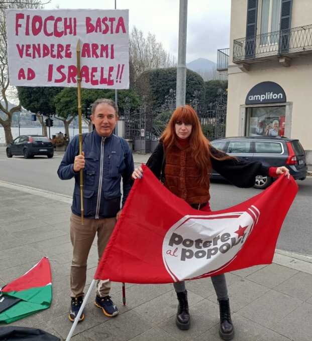 Tra le richieste anche una diretta all’azienda lecchese Fiocchi Munizioni: “Basta vendere armi a Israele”.