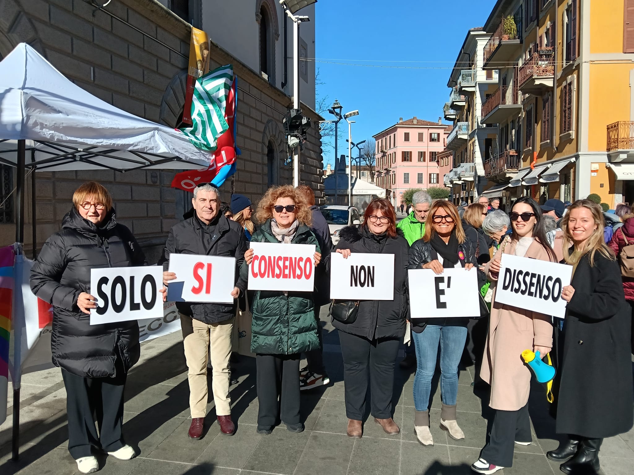 “Il consenso non si negozia”: a Lecco presidio e flash mob contro DDL “stupri”