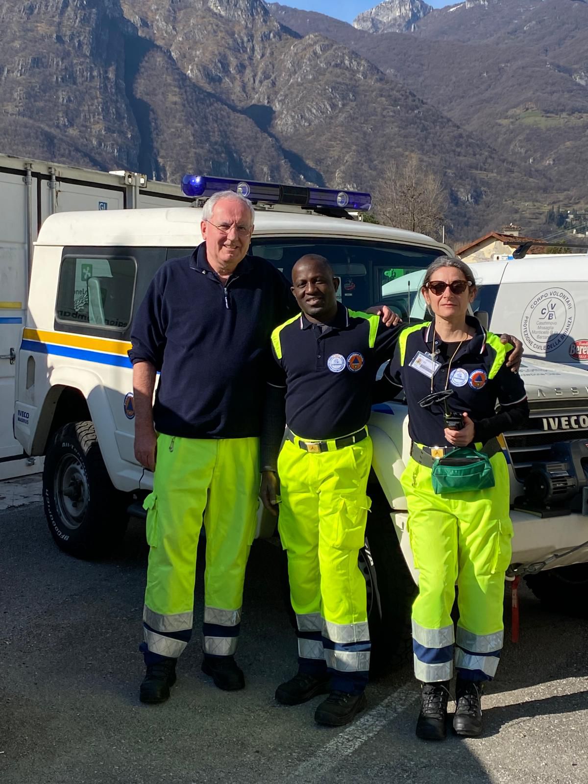 A ricevere il saluto di ringraziamento per quanto fatto, giunto via radio dal Prefetto di Sondrio Anna Pavone, sono stati i volontari Giuseppe Sala, Marco Pellegrini, Oumar Coulibaly, Giacomo Ghisetti, Pietro Magni, Valeria Sanvito, e Claudio Viganò.