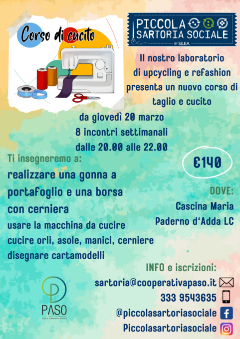 Per iscriversi possibile mandare una mail a sartoria@cooperativapaso.it oppure telefonare ai numeri: cel. 333 9543635