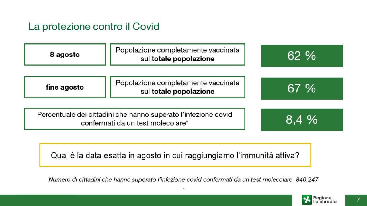L’8 agosto 3 lombardi su 4 saranno vaccinati