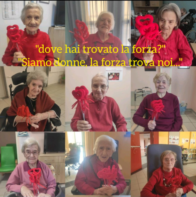 “Oggi – spiega la Coordinatrice Erika Lupo – via ‘tablet’ queste immagini sono state inviate e condivise con tutti i familiari dei nostri Residenti. Un modo anche questo per far arrivare forte il nostro messaggio a tutto il territorio”. “Ogni volta che un donna lotta per se stessa, lotta per tutte le donne…”. “Dove hai trovato la forza? La forza trova noi…siamo donne”. Sono solo alcuni dei messaggi a corollario di questo bellissimo collage dedicato.
