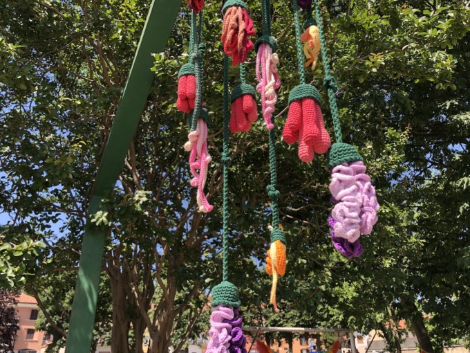 Lo Yarn bombing, letteralmente “bombardamento di filati”, è un movimento nato in Texas nel 2005 con l’artista Magda Sayeg, che ha lanciato questa particolare forma di arte da strada, capace di generare un risultato sorprendente, per il fortissimo impatto cromatico e per la qualità e originalità delle decine di creazioni, l’empatia generata da una manualità alla portata di tutti, eletta a forma d’arte.