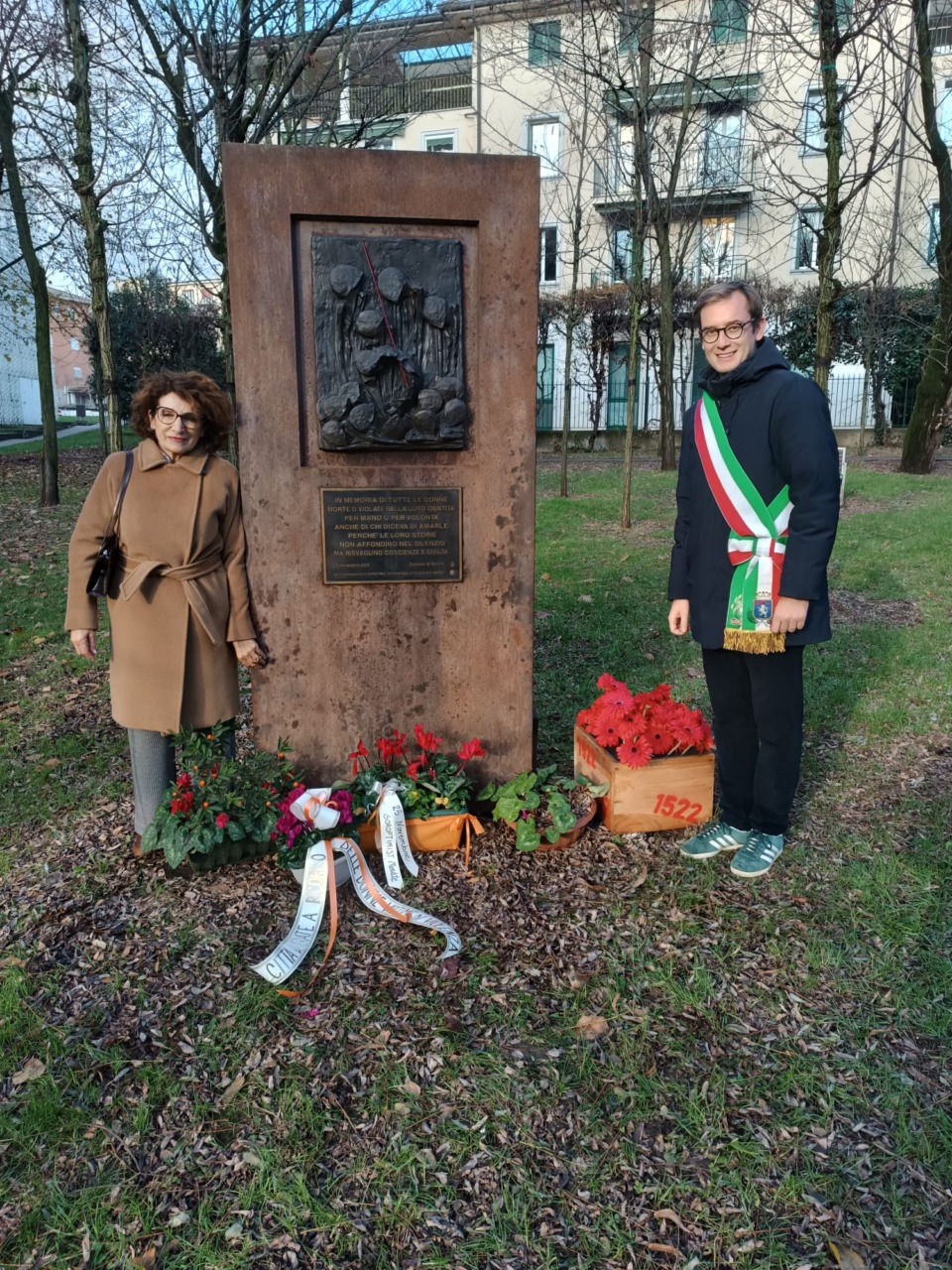 Successivamente, un mazzo di fiori è stato deposto al monumento in ricordo delle donne vittime di violenza al Giardino della Memoria.