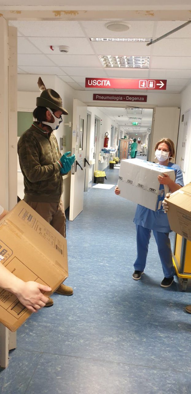Gli alpini di Carenno hanno donato 75 tute in materiale tyvek alla Pneumologia dell’ospedale di Merate.
