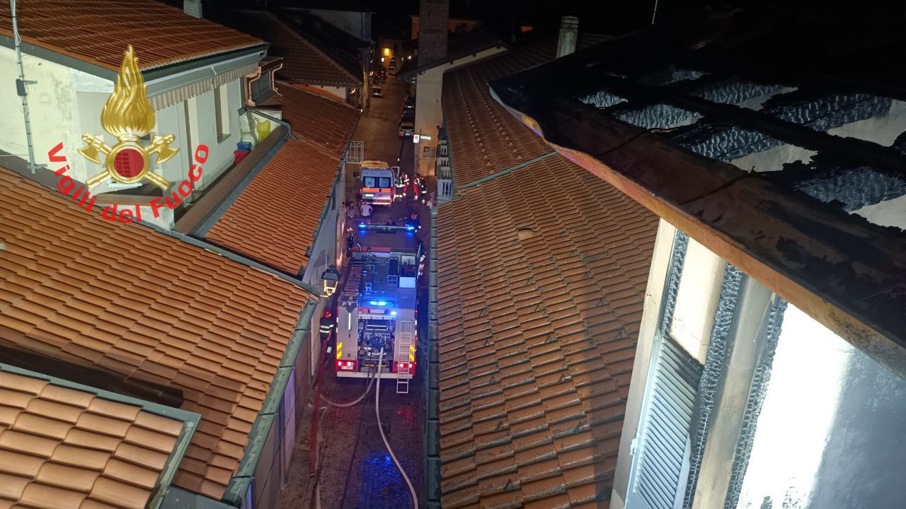 Il rogo ha distrutto in pochi minuti l’appartamento e buona parte del tetto. Sul posto si sono portati diversi mezzi dei Vigili del fuoco, ambulanze, Carabinieri e gli uomini della Protezione civile.