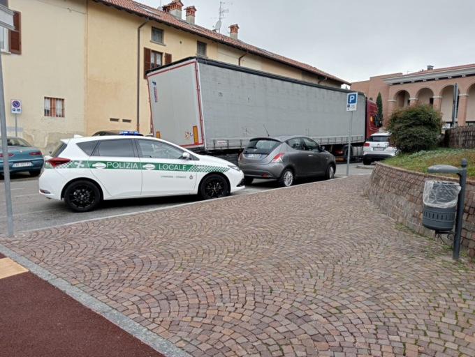 Il camionista, di origini straniere, verrà sanzionato per non avere rispettato il divieto di entrare nel centro storico di Lomagna.