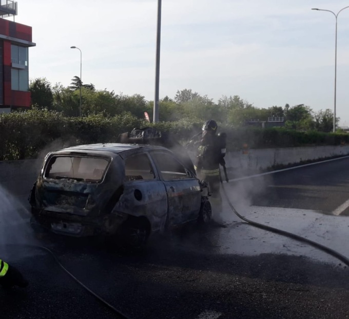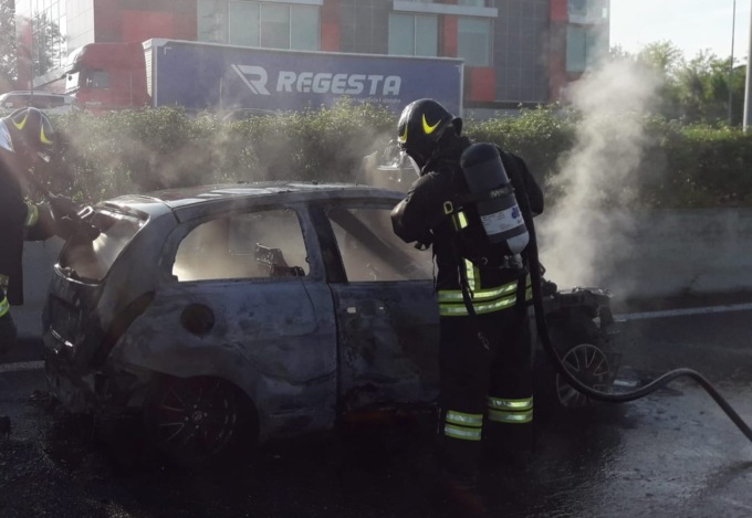 Auto a fuoco dopo un incidente: intervento dei pompieri in Statale 36.