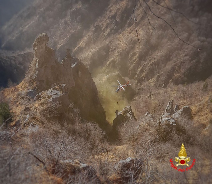 Vista la zona estremamente impervia i pompieri hanno raggiunto l’auto calandosi con le corde, quindi le squadre hanno utilizzato cesoie e divaricatori portatili per aprire dei varchi nell’automobile. Le operazioni sono durate circa 4 ore.