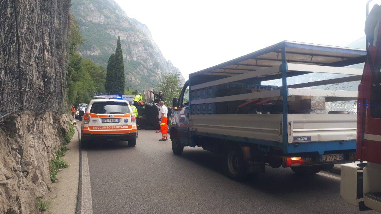 La Renault ha urtato la roccia e poi si è capottata finendo sul guardrail a strapiombo sul lago