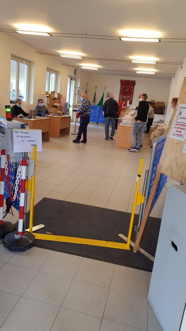 Non c’è stata nessuna coda e nessun assembramento ne’ all’interno, nè all’ esterno. L’ingresso era contingentato con obbligo di mascherina a senso unico ed era obbligatorio l’uso digel disinfettante. L’entrata era di 3 persone alla volta (per ognuna delle 3 postazioni presenti per la registrazione delle tessere). Anche il sindaco Giancarlo Aldeghi ha partecipato alla distribuzione dei kit di sacchetti. La prossima distribuzione si svolgerà con le stesse modalità sabato 3 ottobre per le zone di Torricella e Dagò Villanova.